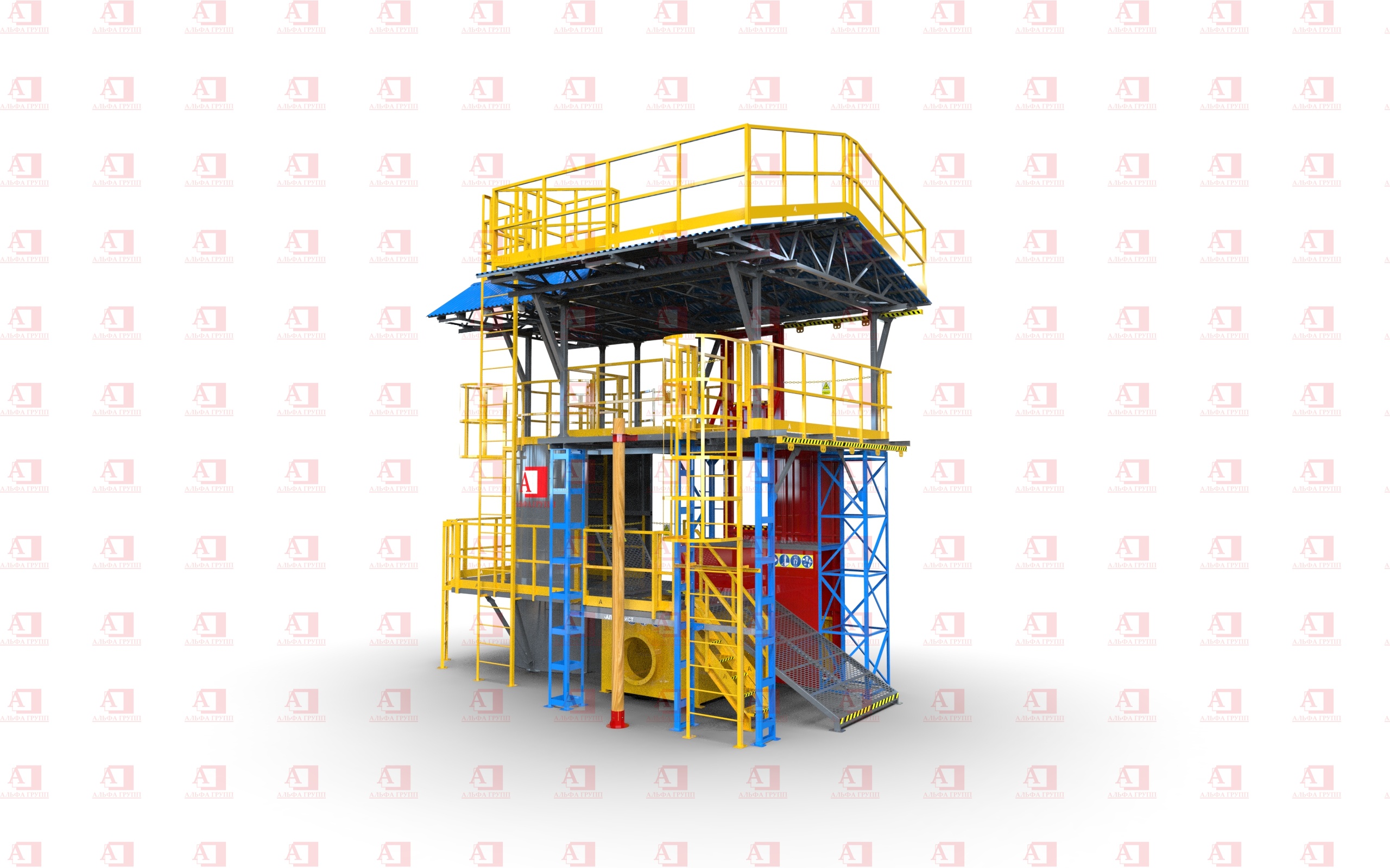 Места интенсивной работы с трипод усилены листами стали и швеллером. Люки и лазы размещены строго симметрично друг под другом для максимального использования высоты комплекса.